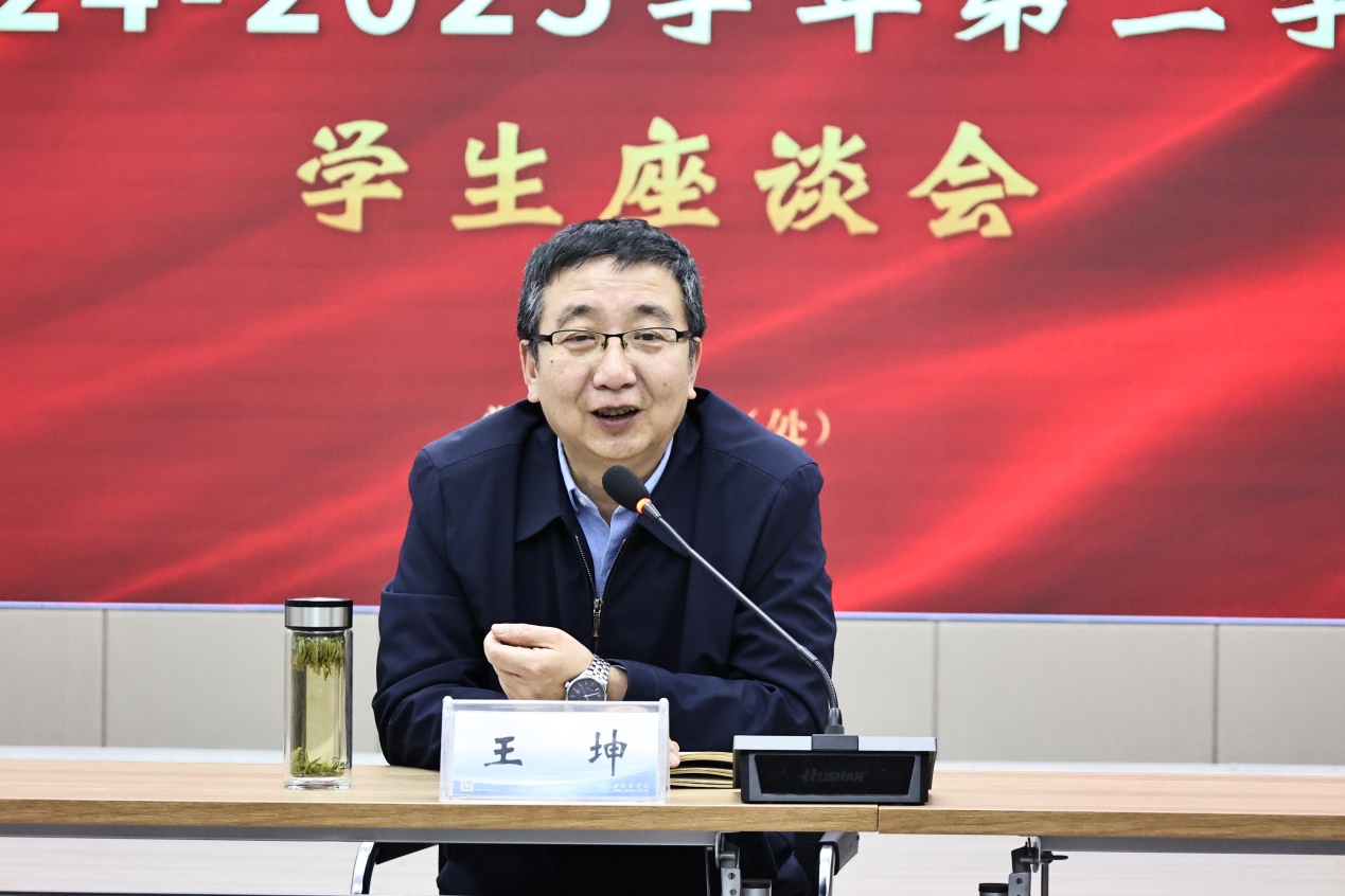 为深入了解学生在学习生活中的实际需求,切实解决学生实际困难,倾听学生对学校发展的建议。5月13日晚,学校在大学生活动中心四楼路演大厅召开了2024-2025学年第二学期学生座谈会。校长王坤、党委副书记李岳出席本次座谈会,党委组织部(人事处)、党委宣传统战部、校办公室、教务处、学生工作部(处)、基本建设与后勤管理处、招生就业处等职能部门以及各学院学生科长、60名学生代表参加座谈会。