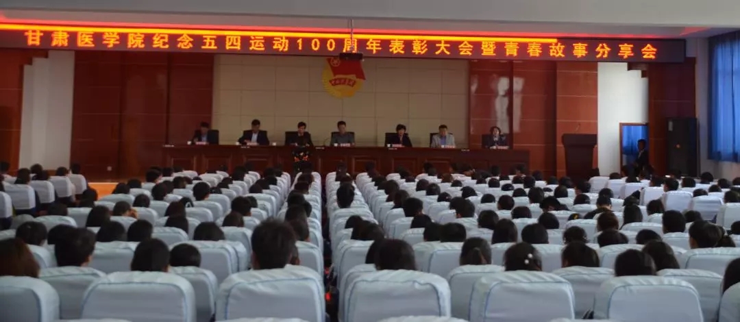 在学院召开的纪念五四运动100 周年表彰大会暨青春故事分享会上,学院党委副书记、副院长崔安平同志出席会议并作讲话。大会表彰奖励了2018年度涌现出的先进团组织、优秀社团及先进个 人,新团员进行了入团宣誓。随后,考入哈尔滨医科大学硕士研究生的医学检验技术1503班的贾曼莎同学,获得励志奖学金的护理专科1702班的徐理同学, 携笔从戎、誉满返校的医学检验本科1801班的马娟霞同学分别作了报告,分享了她们的青春故事。新时代赋予新使命,新目标开启新征程。广大青年对五四运动 的最好纪念,就是在党的领导下,勇做走在时代前列的奋进者、开拓者、奉献者,努力成长为德智体美劳全面发展的社会主义建设者和接班人,让五四精神放射出更 加夺目的时代光芒。组织人事处副处长潘润存主持会议,党委宣传部、学工部、团委及相关部门负责人、各系团总支书记、专职辅导员、受表彰的集体及个人约 500余人参加了会议。