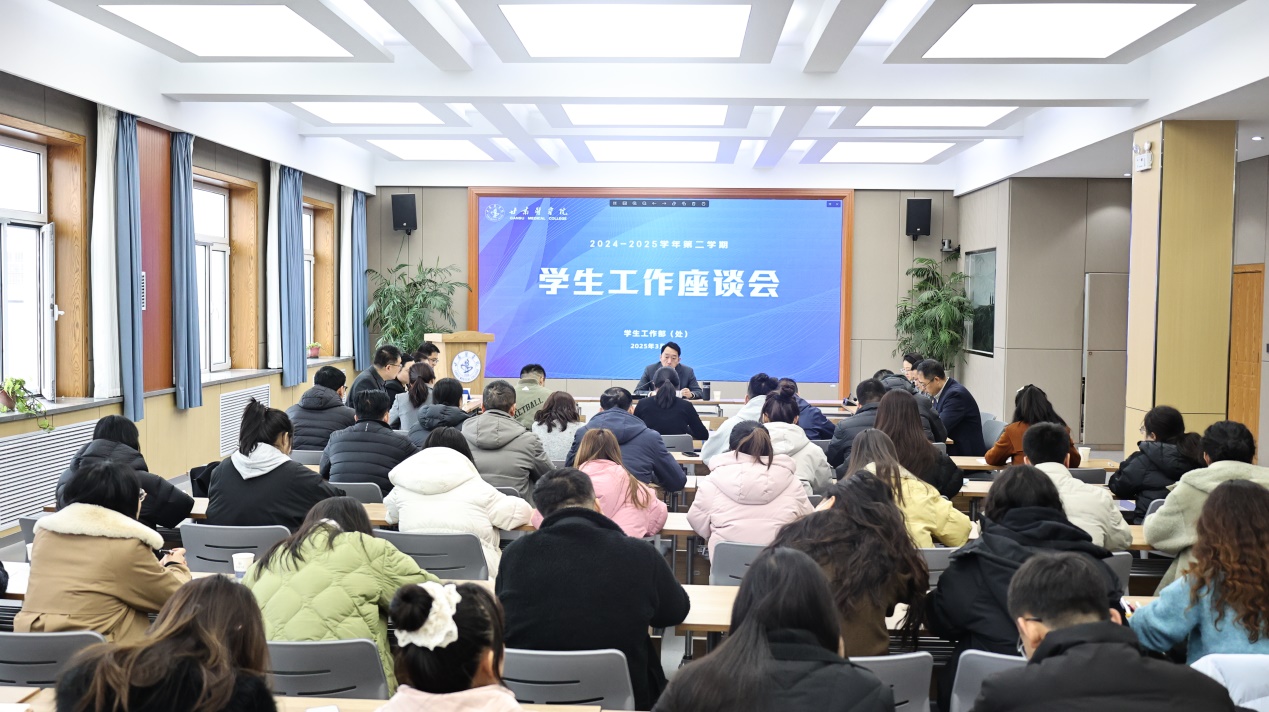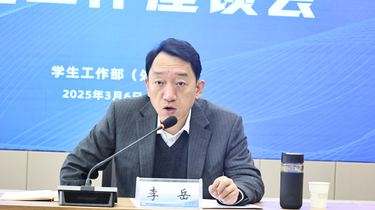 座谈会上,参会人员紧密围绕学生工作日常管理、学风建设、资助育人、心理健康教育、应征入伍、团学活动以及就业创业等方面存在的难点、堵点问题展开深入交流发言,提出意见建议。李岳逐一点评回复,并对学生工作提出了三点明确要求。一是学生工作队伍要聚焦主责主业,对标需深化“大思政”育人格局,全力推动思政教育与专业教育的深度融合,构建起全员育人的全新生态。二是要强化辅导员的职业认同与能力建设。辅导员要时刻牢记“为党育人、为国育才”的使命,秉持“以生为本” 的工作理念,通过价值引领激发学生的内生动力,以成长赋能帮助学生摆脱职业倦怠,依靠制度保障筑牢发展根基。同时,要加强辅导员队伍的专业化建设,完善培训体系与职业发展路径,努力成为学生思想的引路人、成长的护航者。三是加强学生管理,大力提升学风建设水平。推行“学风建设”系列活动,各相关部门在会后需细化任务清单,明确责任人与时间节点,以“钉钉子精神”扎实推进各项工作的落实。