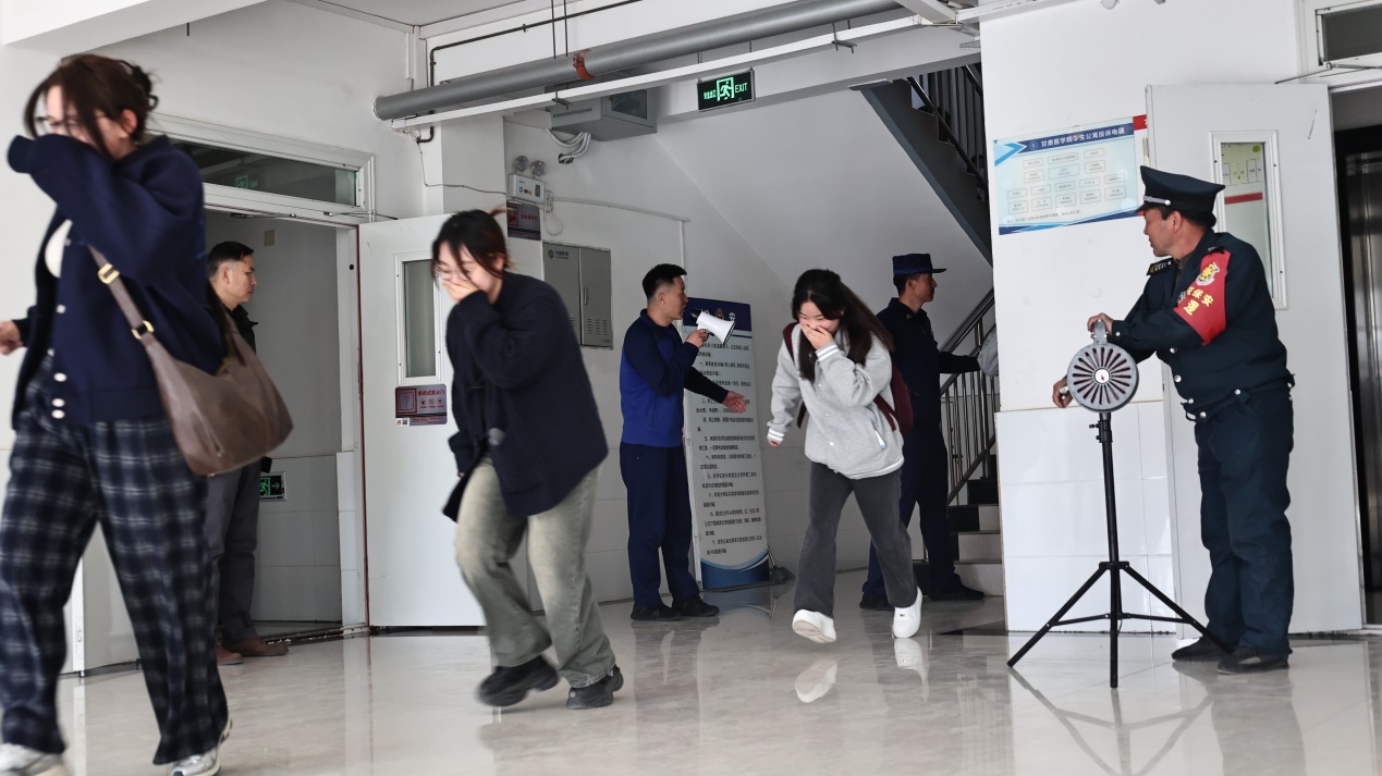 随后的实战演练精准模拟地震与火灾双重场景。17时,随着应急警报骤然响起,公寓楼内800余名师生立即启动应急程序。参演人员严格遵循“伏地、遮挡、手抓牢”的地震避险要领,随后在2分15秒内沿预定路线完成疏散集结。消防演练环节中,微型消防站队员与师生协同完成火情处置、伤员转运等课目,全过程指挥有序、响应迅速。