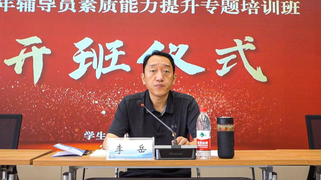 李岳在动员讲话中强调,辅导员作为高校思想政治工作的骨干力量,肩负着培养担当民族复兴大任时代新人的重要使命。针对当前学生心理问题、网络舆情风险、就业压力等新挑战,他要求全体辅导员通过本次培训重点提升三项核心能力:一要筑牢政治根基,深入学习贯彻习近平新时代中国特色社会主义思想;二要锤炼专业本领,通过心理危机干预、职业生涯规划等案例实训提升工作能力;三要厚植师者情怀,践行"贴近实际、贴近生活、贴近学生"的工作准则,当好学生的"人生导师"和"知心朋友"。要以空杯心态投入学习,以严实作风展现形象,以担当精神践行使命,切实将培训成果转化为育人实效。