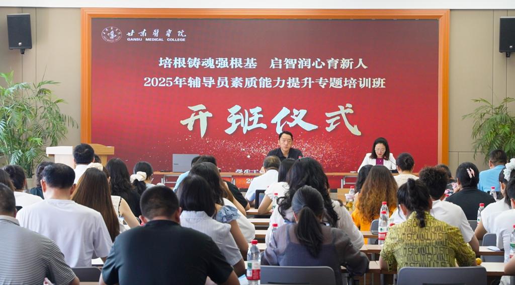 为深入学习贯彻习近平总书记关于教育强国建设的重要论述,进一步加强辅导员队伍建设,7月16日,甘肃医学院"培根铸魂强根基 启智润心育新人"辅导员素质能力提升专题培训班正式开班。学校党委副书记李岳出席开班仪式并作动员讲话,学生工作部(处)负责人、各学院学生科长及全体专职辅导员参加培训。