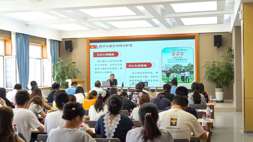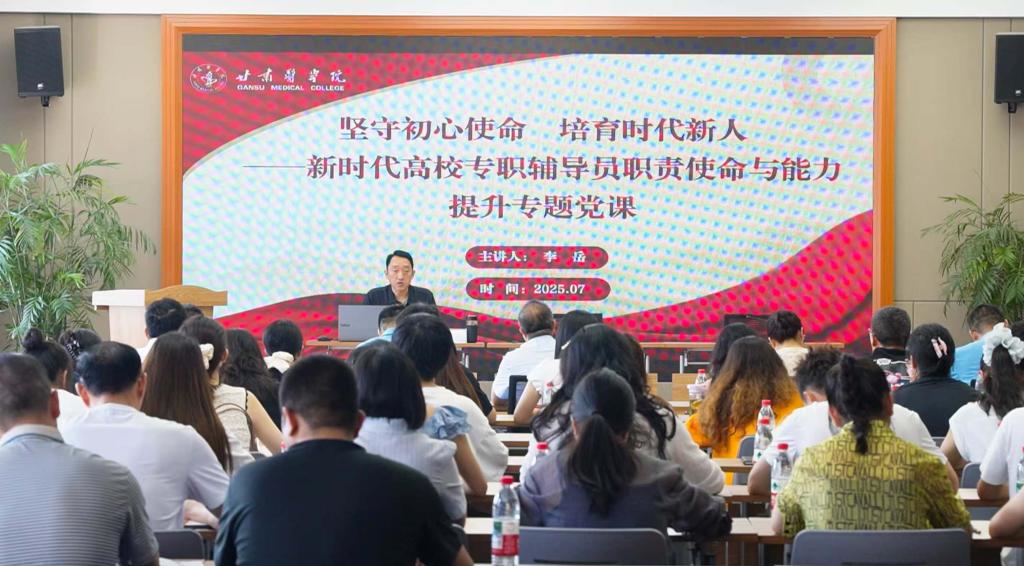 为深入学习贯彻习近平总书记关于教育强国建设的重要论述,进一步加强辅导员队伍建设,7月16日,在甘肃医学院辅导员素质能力提升专题培训班上,学校党委副书记李岳以《坚守初心使命 培育时代新人》为题,为全体专职辅导员、学生工作部(处)负责人及各学院学生科长讲授了一堂深刻生动的专题党课。