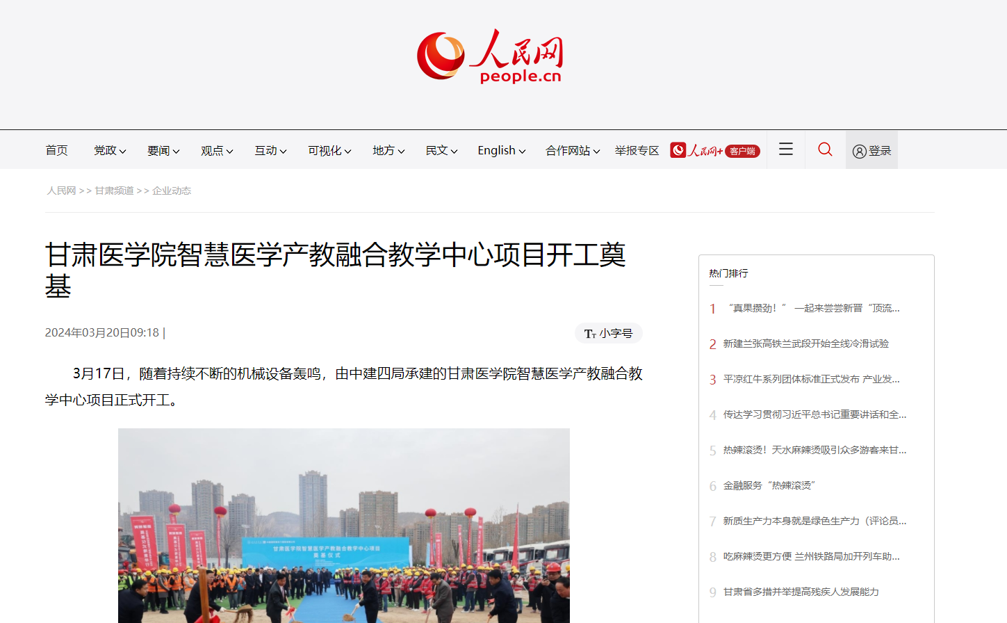观澜新闻客户端讯(通讯员 张小鹏 兰州日报社全媒体记者 任泽昕 文/图)3月17日,由中建四局承建的甘肃医学院智慧医学产教融合教学中心项目在平凉正式开工。甘肃医学院智慧医学产教融合教学中心项目开工奠基据介绍,甘肃医学院智慧医学产教融合教学中心项目位于甘肃省平凉市崆峒区,总建筑面积3.5万平方米,预计2025年底完工。项目建成后将进一步深化产学研融合,有力促进临床医学、预防医学、口腔医学、医学检验技术、医学影像...