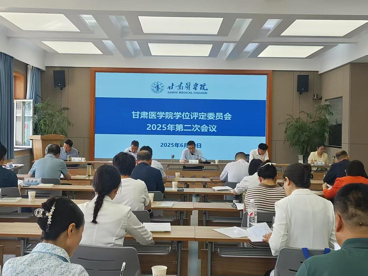 学校召开2025年学位评定委员会会议6月10日,甘肃医学院2025年学位评定委员会会议在学校路演大厅召开。学校校长、学位评定委员会主任委员王坤主持会议并讲话,学校学位评定委员会委员及校学位办工作人员参加会议。会上,教务处汇报了2025年本科毕业生学士学位授予资格审查情况及审查结果。各位委员审阅了2025年拟授予学士学位学生名单并进行了无记名投票表决。党委委员、副校长刘凯宣读了本次会议决议(草案),与会委员对决议(...