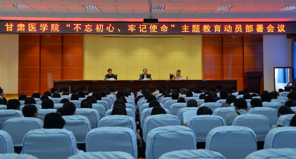 根据中央统一部署和省委工作安排,9月11日下午,学院召开“不忘初心、牢记使命”主题教育动员部署会议,传达学习省委主题教育第一批总结暨第二批部署会议精神,动员全院各级党组织和党员干部统一思想、迅速行动,扎实开展好主题教育。省委第七巡回指导组组长、省人大监察和司法委员会副主任李存文同志出席会议并讲话。甘肃医学院党委书记、学院“不忘初心、牢记使命”主题教育领导小组组长高淑美主持会议并作动员...