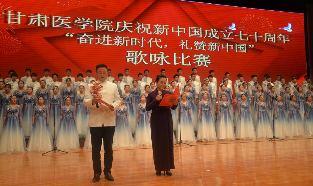 9月27日、28日两天,平凉市举行“壮丽70年·颂歌献祖国”庆祝中华人民共和国成立70周年歌咏比赛。学院合唱代表队作为第六支参赛队伍,在9月27日晚为祖国献唱。我院代表队选择《怒吼吧黄河》《大地飞歌》两首参赛曲目,学院党委书记高淑美,党委副书记、副院长崔安平亲临现场朗诵,100余名合唱队员声情并茂、气势如虹,向新中国70华诞献礼,唱出了甘医师生对祖国的无限热爱,唱出了共筑中华民族伟大复兴中国梦的坚定信心,抒...
