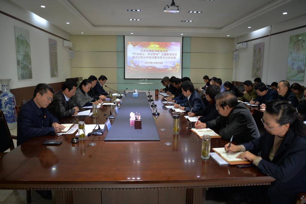 为深入推进“不忘初心、牢记使命”主题教育的开展,提高学院基层党支部书记的政治素质和履职能力,建设高素质基层党组织带头人队伍,进一步巩固党在高校的执政根基,根据中央、省委第二批主题教育决策部署和学院党委主题教育工作安排,10月10日,甘肃医学院举行“不忘初心,牢记使命”主题教育党支部书记轮训开班式暨党支部书记讲党课。学院党委书记、主题教育领导小组组长高淑美出席开班式并做首场培训讲座,党委副书记、...