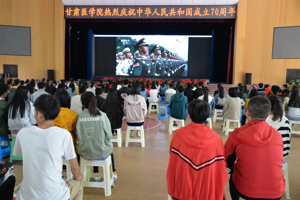 为热烈庆祝中华人民共和国成立70周年,深入推进“不忘初心、牢记使命”主题教育开展,甘肃医学院积极开展系列庆祝活动,营造了热烈喜庆的文化氛围、传递了积极向上的正能量。一、充分利用校园媒体专题宣传,营造国庆氛围通过宣传栏、电子屏、悬挂国旗、制作国庆主题黑板报、设立爱国主题花坛等多种方式,利用校园网、微信公众号、校园广播等多种载体,开展“我与祖国同框”、 “爱国需要仪式感——换上甘医送你的国旗头像...