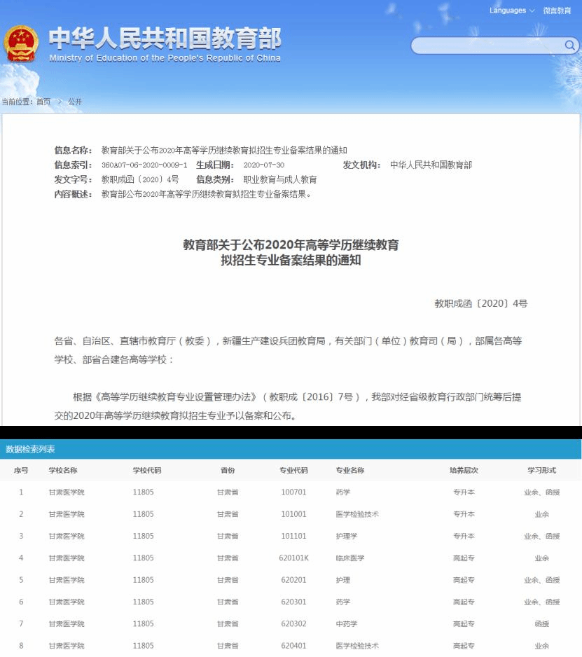 日前,教育部公布了2020年高等学历继续教育拟招生专业备案结果的通知,我院申报的护理学、药学两个专升本函授专业和护理、药学、中药学三个高起专函授专业成功获批,学制2.5年,将于今年开始招生。至此,学院专升本专业已增至5个,专科专业增至7个。近年来,学院的发展得到了省教育厅和卫健委的高度重视和大力支持。在此次专业申报中,继续教育学院在认真调研的基础上,结合办学实际,组织专家对拟设置的专业进行了充分论证和...