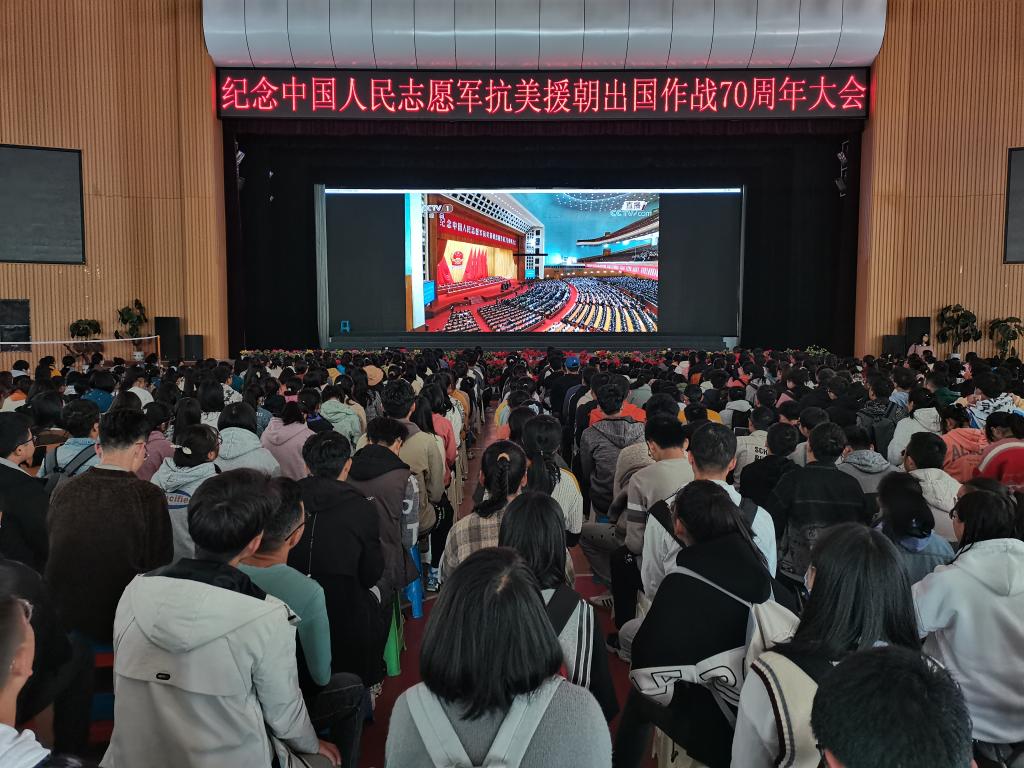 10月23日上午,甘肃医学院组织收听收看“纪念中国人民志愿军抗美援朝出国作战70周年大会”,认真聆听习近平总书记的重要讲话。学院在办公楼会议室和体育馆设立两个主会场,各院系在部门办公室设立分会场,全体无课师生近2000人收听收看了直播。习近平总书记指出,中华民族是爱好和平的民族,中国人民是爱好和平的人民。抗美援朝战争伟大胜利,是中国人民站起来后屹立于世界东方的宣言书,是中华民族走向伟大复兴的重要里程碑...