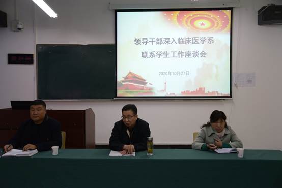 为进一步推进落实领导干部下基层联系学生工作,体察学情、关爱学生、答疑解惑、解决问题,10月27日晚,院长王坤带领学院相关部门负责人赴临床医学系开展深入基层联系学生工作座谈会。临床医学系学生管理工作负责人及40余名学生代表参加了会议。座谈会上,学生代表们积极发言,围绕入学以来的校园学习和生活经历,就学习、日常管理、生活设施、后勤服务等工作展开充分讨论,并提出了许多建设性的意见和建议,王坤认真听取每一位...
