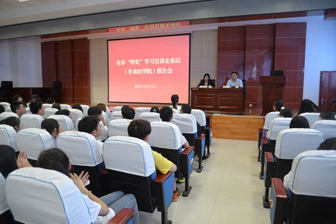 为深入学习贯彻习近平新时代中国特色社会主义思想,全面宣讲中国共产党的百年光辉历程和伟大业绩,推动“四史”学习教育向深度推进,平凉市“四史”学习宣讲走基层,甘肃医学院专场报告会于6月4日上午在学院学术报告厅举行。宣讲团由平凉市委讲师团副团长罗常灵带队,学院思政课全体教师、学生代表共计400余人聆听了报告。来自平凉职业技术学院教师李媛,崇信县第二幼儿园教师石燕,华亭市工委纪念馆讲解员莫波,庄浪县梯田...