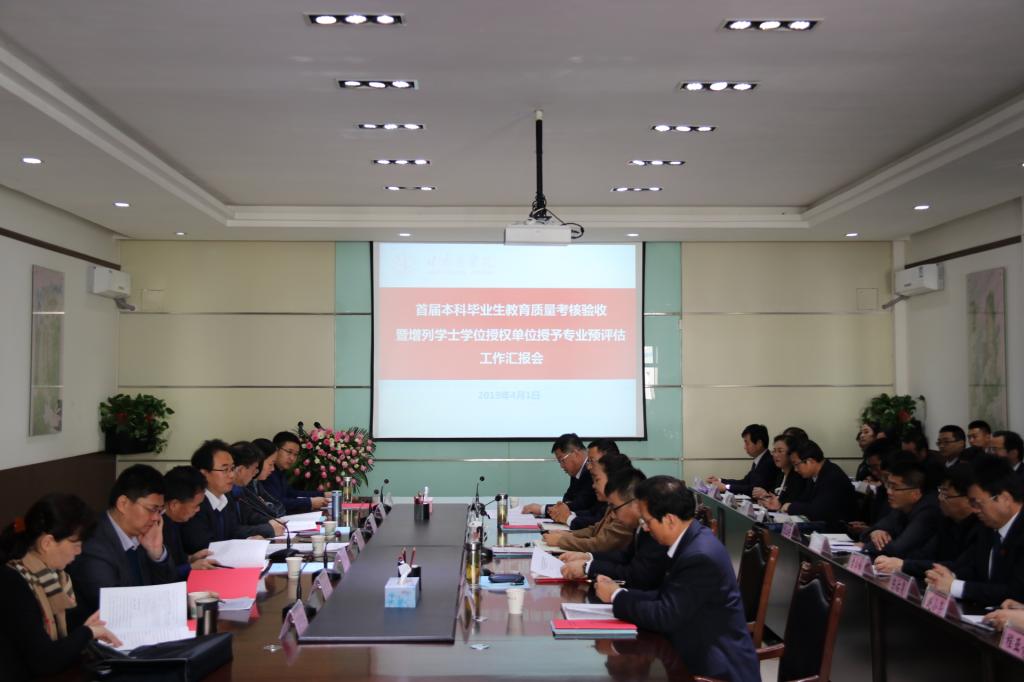4月2日下午,学院召开了首届本科毕业生教育质量考核验收预评估工作意见反馈会,预评估专家组刘永琦组长主持了会议。以甘肃中医药大学教务处长刘永琦教授为组长的专家组一行7人,于2019年4月1至2日对甘肃医学院首届本科毕业生培养质量暨增列学士学位授权单位和授予专业工作进行了实地考察评估。考察期间,专家组听取了甘肃医学院院长王坤同志代表学院所做的工作汇报;听取了医学检验技术、护理学、药学3个本科专业负责...