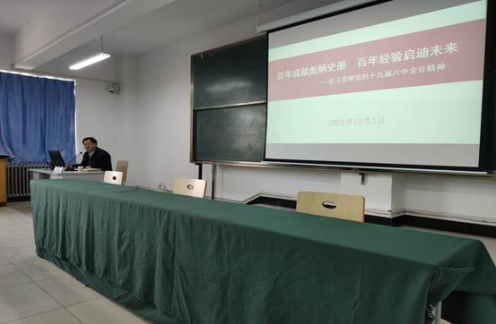 学院组织收看全省教育系统学习宣传贯彻党的十九届六中全会精神专题宣讲报告会11月29日,全省教育系统学习宣传贯彻党的十九届六中全会精神专题宣讲报告会在兰召开,兰州大学马克思主义学院教授刘先春作专题辅导,省委教育工委书记,省教育厅党组书记、厅长王海燕主持会议并讲话。学院在第一会议室设立分会场,院长王坤,党委副书记、副院长崔安平,副院长李诚,纪委书记杨建福,各部门、院系党政主要负责人,各基层党组织书记,马...