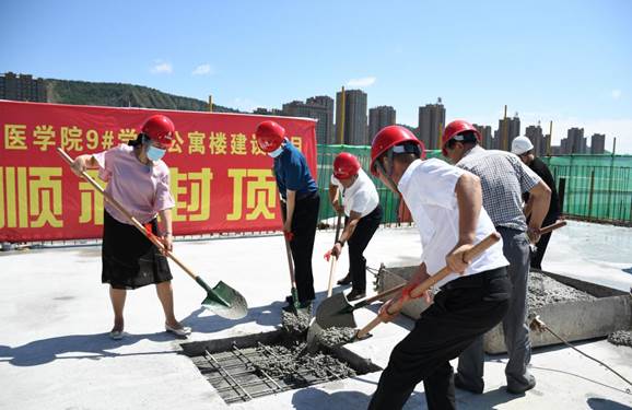 甘肃医学院9号学生公寓楼顺利封顶 7月27日上午,经过3个多月的紧张施工,甘肃医学院9号学生公寓楼主体顺利封顶。学院领导高淑美、李诚参加封顶仪式,并深入项目建设现场检查指导工作。图为学院领导参加封顶仪式 项目开工以来,在学院领导和相关部门的大力支持下,经过施工单位、监理单位等参加各方共同努力,工程建设稳步推进,质量安全监控到位,预计2023年3月竣工。届时,学院学生住宿压力将进一步得到有效缓解,办学条件进...