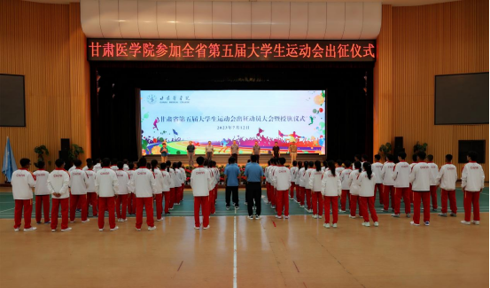盛夏时节,激情飞扬,甘肃省第五届大运会决战的号角已吹响,大运会参赛工作已进入决战决胜阶段。经过几个月的艰苦训练,甘肃医学院代表团也即将踏上征程。7月12日下午,甘肃医学院在体育馆举行甘肃省第五届大学生运动会出征动员暨授旗仪式,为甘医健儿出征加油助威。学院党委副书记、副院长崔安平出席并讲话,学院办公室、党委宣传统战部、教务处、计财处、国资处负责人以及代表团成员、领队、教练员、运动员参加仪式。公课部...