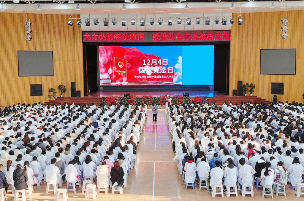 2023年12月4日是第十个国家宪法日,教育部组织开展教育系统“宪法晨读”活动。当天上午,教育部在北京设立主会场,学校党委宣传统战部联合学工部(处)、各院系积极组织广大学生1000多人,在体育馆通过全国青少年普法网,集体同步收看直播及宪法跟读等活动。 “第一条 中华人民共和国是工人阶级领导的、以工农联盟为基础的人民民主专政的社会主义国家……”伴随着庄严的升旗仪式,“宪法晨读”开始。教育部领导在主会场领读宪法...