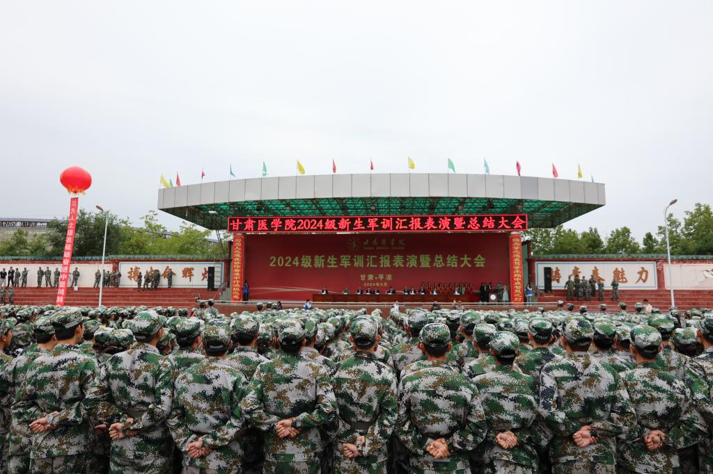 9月14日上午,甘肃医学院2024级新生军训汇报表演暨总结大会在体育场隆重举行。学校党委书记汪永锋出席并讲话,雷鹏举主持,刘凯宣读表彰决定,杨建福、胡希杰、练成以及崆峒区人武部军训总教官李永博出席,各学院党政负责人,2024级班主任、辅导员以及全体新生参加。随着国旗护卫队的入场,本次军训汇报表演正式开始,由分列式方阵、坦克方阵、彩旗方阵、擒敌拳方阵、战术方阵先后进行了表演,他们动作规范,步调一致,掌声不断...