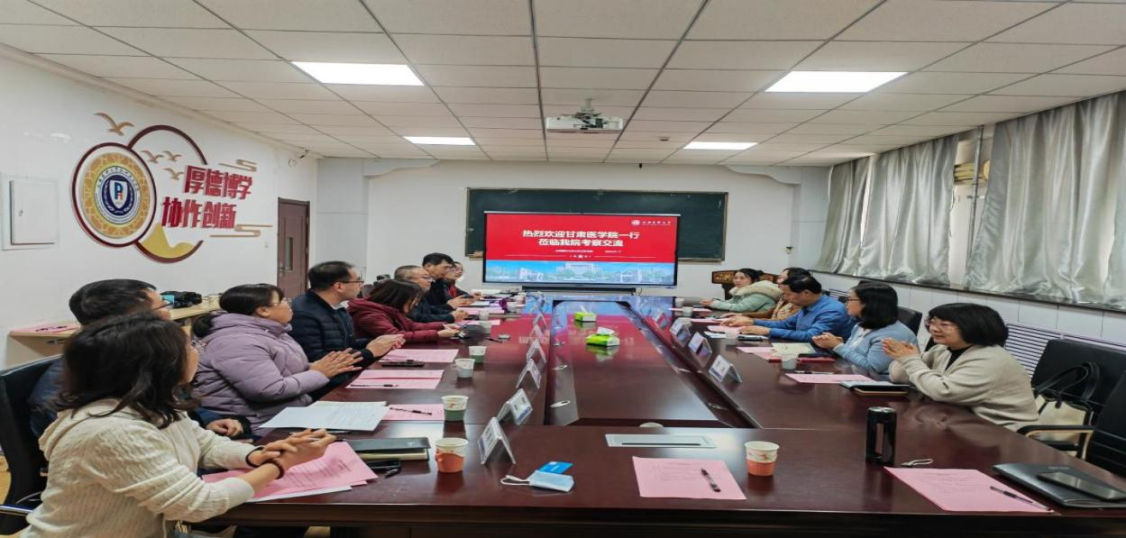 在参观了公共卫生学院后,召开了座谈会,座谈会由山西医科大学公共卫生学副书记蔚钰琼主持。山西医科大学公共卫生学院院长王彤致辞并介绍了学院发展的基本情况。甘肃医学院预防医学系系主任练成说明来访目的,并就预防医学系基本情况做了介绍。王院长肯定了甘肃医学院预防医学系的发展并对预防医学系未来的发展提出中肯建议。双方就人才培养、学科专业建设、职业卫生和黄河流域公共卫生研究等方面展开了深入交流和探讨。