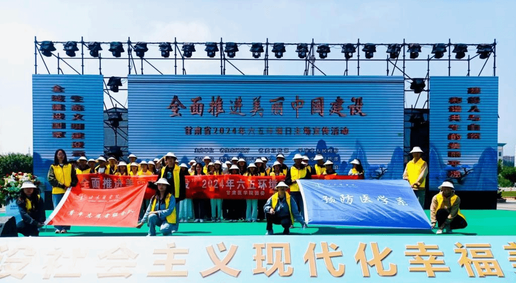 6月5日,以“全面推进美丽中国建设”为主题的甘肃省2024年六五环境日主场宣传活动启动仪式在平凉市崆峒区绿地广场举行,我校团委青年志愿者服务队及预防医学社共50名学生参加了此次活动。