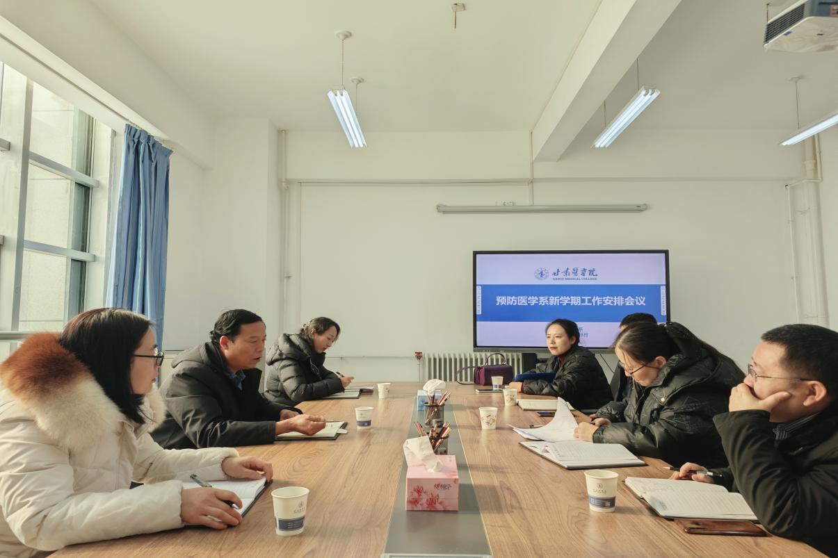 2月23日下午,预防医学系组织新学期工作安排会议,会议由预防医学系主任练成同志主持,预防医学系全体教师参加。