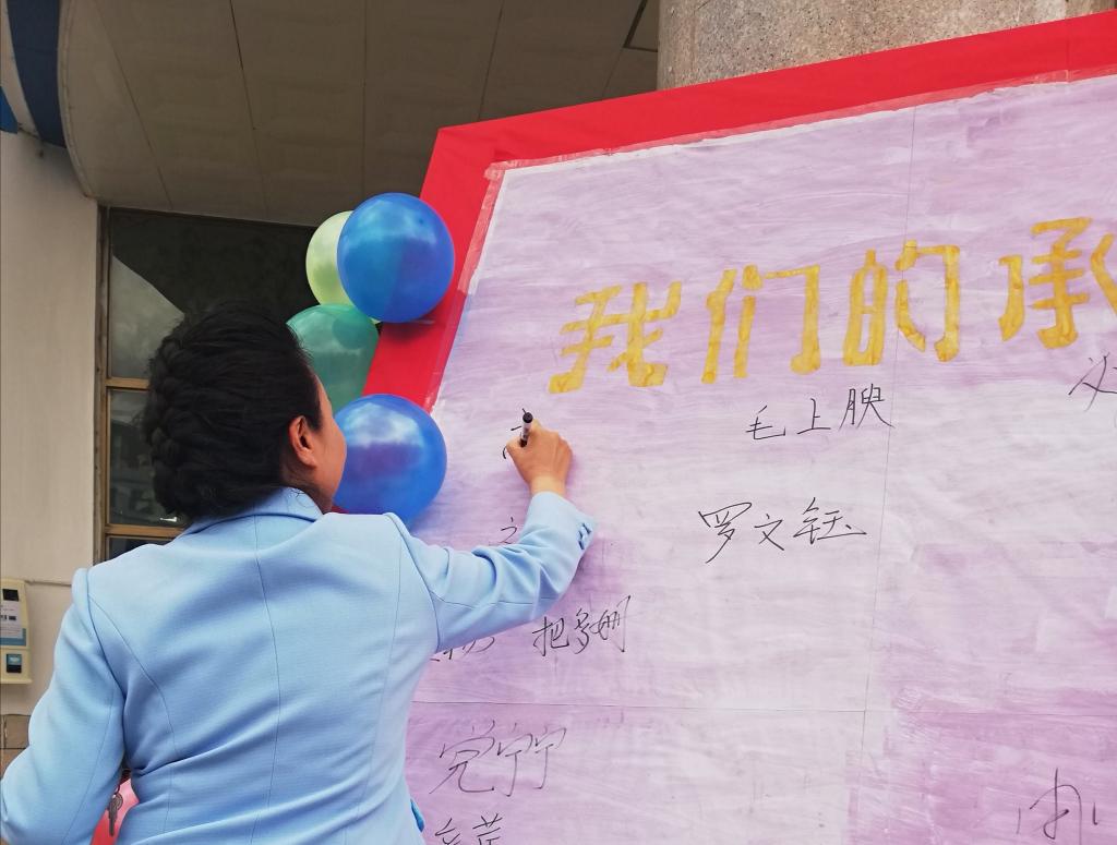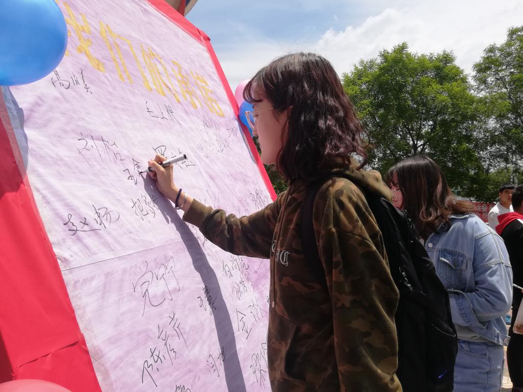药学系全体学生参加了此次活动,在校领导的带领下,同学们踊跃地在“我们的承诺”展板上签下了自己的名字,做出了郑重的承诺。