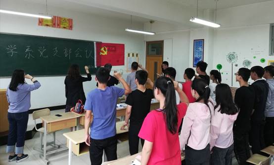 2019年6月24日下午,药学系党支部召开接收预备党员会议,会议严格按照组织程序进行。根据会议程序,14名拟发展对象首先向党组织汇报了入党动机、对党的认识、个人履历、日常表现及不足。与会正式党员进行了讨论,充分发表意见。支委会向会议汇报了发展对象的培养考察情况、征求党内外意见、政审情况等。药学系党支部有师生党员15人,参会党员10人,符合《中国共产党章程》中“有表决权的正式党员超过了应到会党员人数的一半”的规定,经投票表决,同意接收霍雷等五名同志成为预备党员。最后,全体党员、预备党员进行了庄严宣誓。