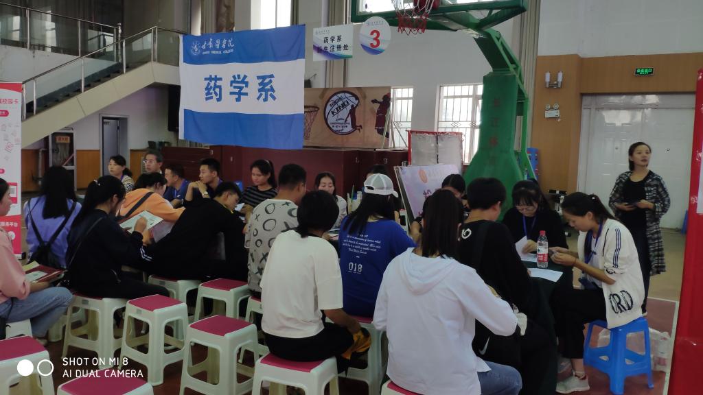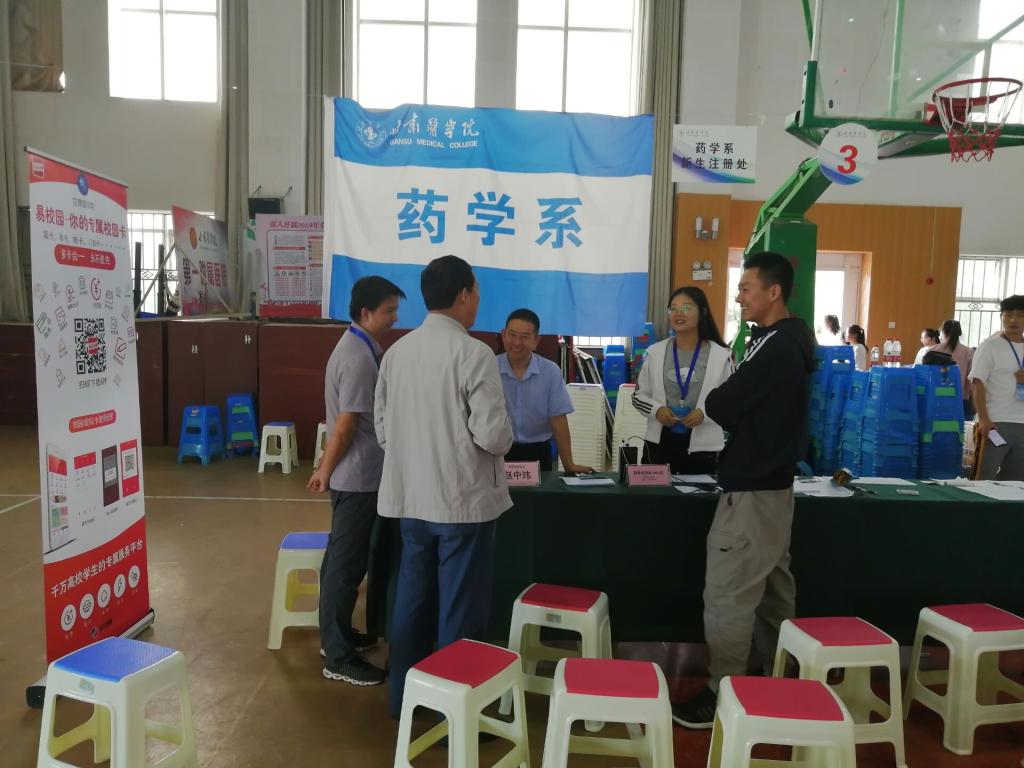 2019年8月30日下午,在全系师生的积极准备下,我系在体育馆开展2019年迎新工作,药学系副主任赵中玮老师,综合与学生科科长戴兴德老师,辅导员马尧、曹馨阳老师等及全体学生会学生干部参加,学生会学生干部引导新生进行报到注册、领取生活用品。