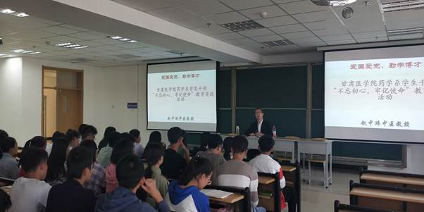 9月30日下午,药学系党支部在2号教学楼A座第10大教组织召开了全系学生干部“不忘初心,教育实践”会议及专题党课活动。大会由药学系党支部书记赵中玮同志主持。参加本次会议的有药学系全体学生党员、入党积极分子、各班班委,学生会干部。会上赵中玮同志以亲身经历围绕衣食住行以及我国近年来的发展变化给我系学生干部上了生动的一课,有着很深的教育意义。