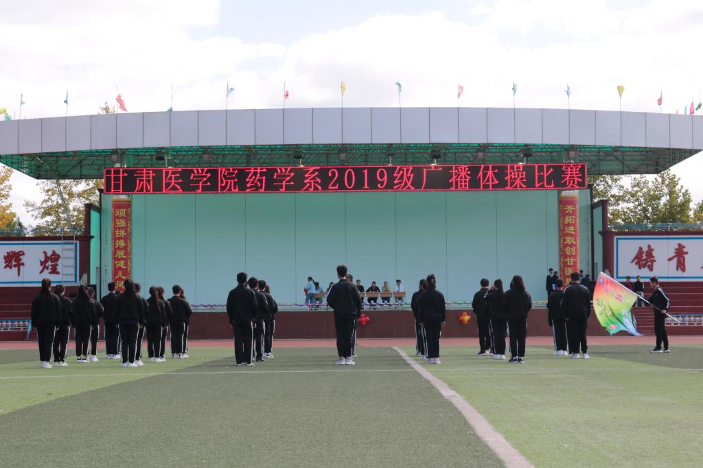 为切实增强学生体质,加强学生锻炼身体的意识,培养班级内部同学之间的协作精神和集体荣誉感,我系于2019年10月16号成功举办了“甘肃医学院药学系2019级广播体操比赛”,本次比赛邀请了药学系副主任赵中玮老师,综合与学生科科长戴兴德老师,团总支书记李晓青老师及17级年级主任董娜老师为活动的评委。