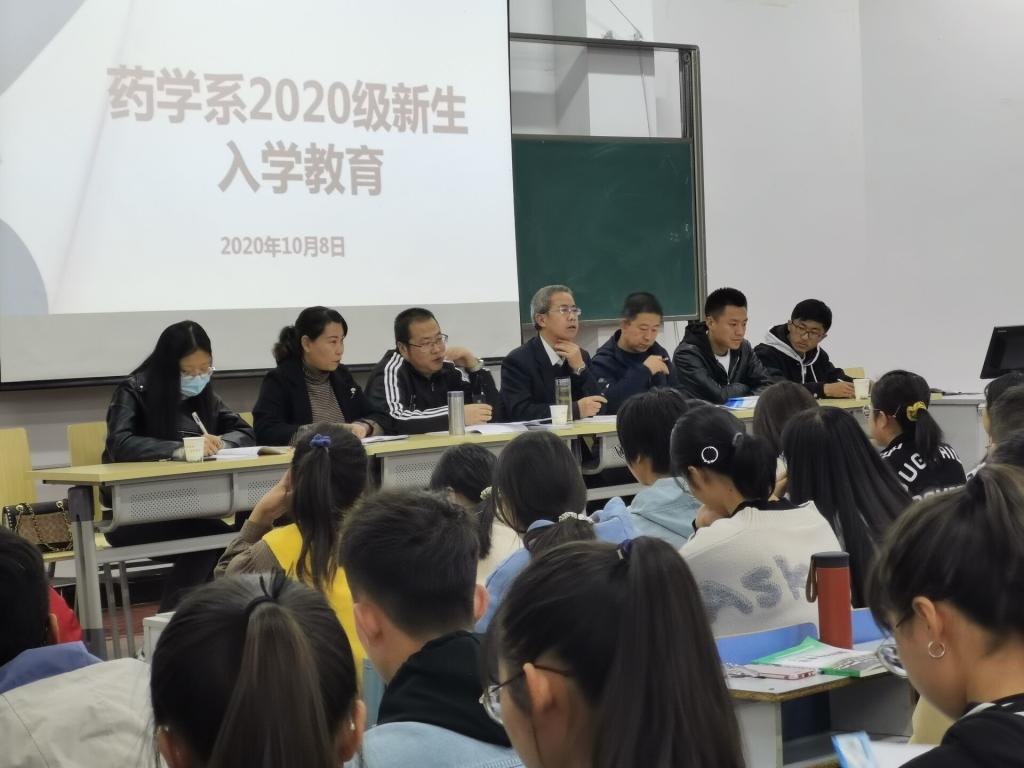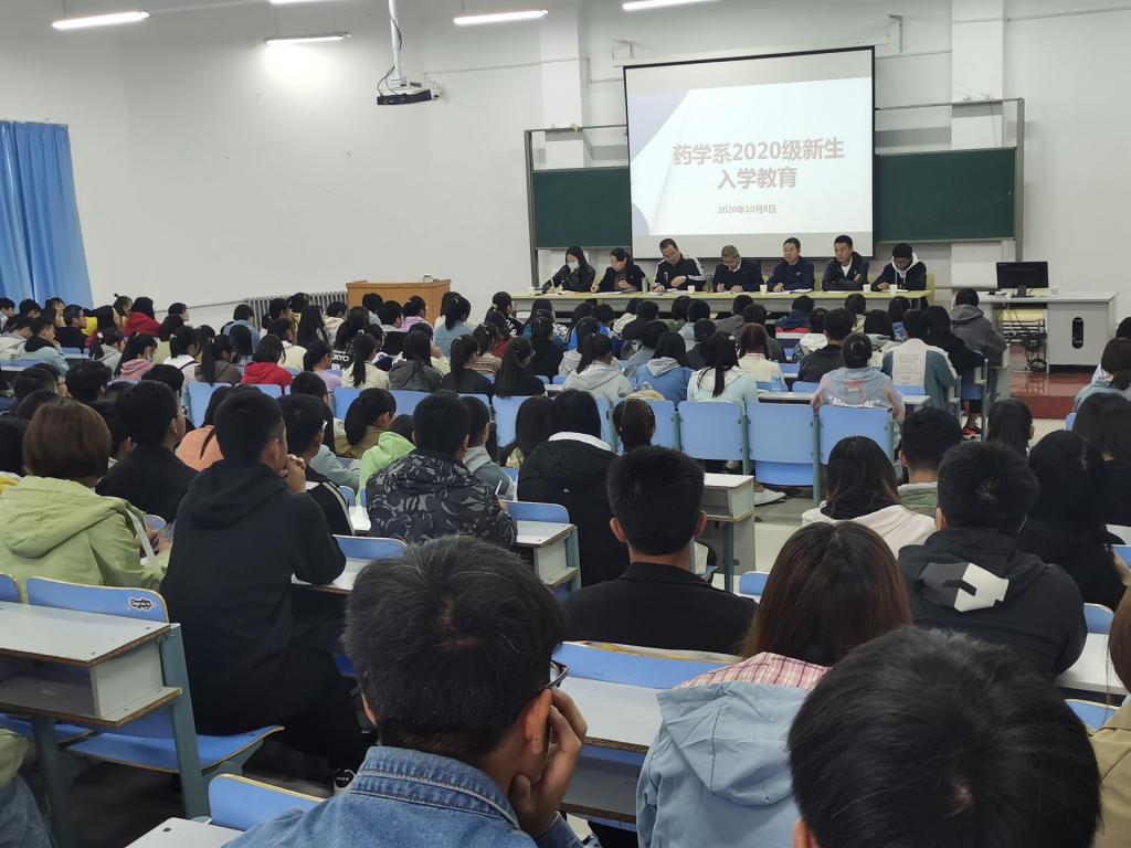 10月8日下午,药学系在1号教学楼2大教召开2020级新生入学教育大会,药学系副主任赵中玮、教务科副科长武喜红、办公室副主任贺艳宁出席会议并讲话,大会由药学系综合与学生科科长戴兴德主持。本次入学教育旨在指导和帮助2020级新生尽快了解和适应新环境、顺利平稳地实现角色转变、明确学习目的、端正学习态度、增强学习动力、科学规划学习生活。