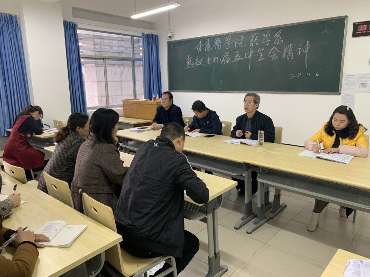 11月6日下午,药学系召开全体教职工会议,传达学习党的十九届五中全会精神。