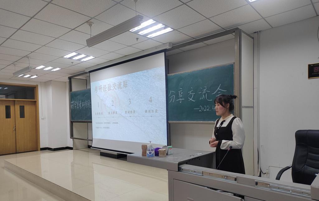 星光不负赶路人,天道酬勤佳音来。随着考研录取陆续结束,药学系喜报频传,一大批2022届毕业生被各大高校录取,将在逐梦的路上朝着更高的目标继续前行。为进一步营造药学系浓厚的学习氛围、提高考研热情、增强考研信心、掌握考研技巧,帮助同学们明确考研目标,做好考研路上的“传帮带”,药学系于2022年4月17日晚在2号教学楼A座3大教举办了“考研指导与经验分享交流会。