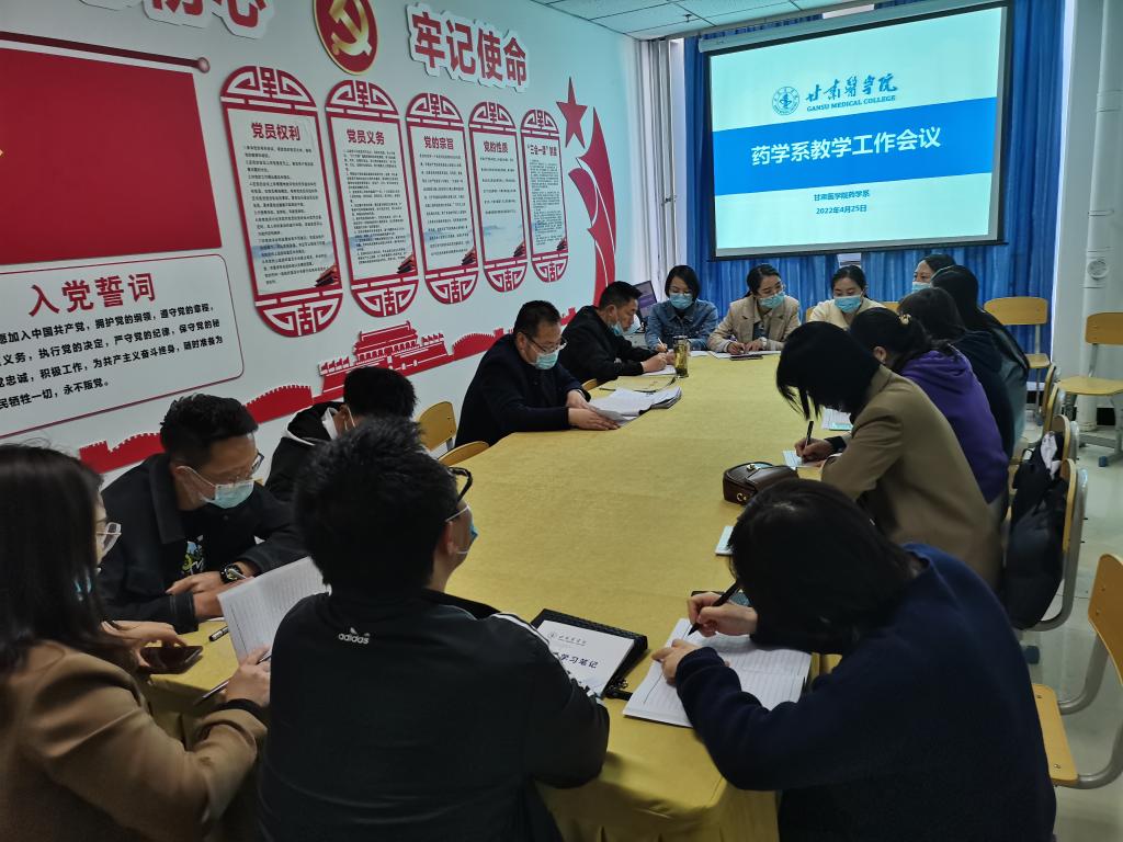 2022年4月25日上午,药学系在党员活动室召开2022学年第二学期第二次教学工作会议,会议传达了全省“双一流”建设、学位与研究生教育工作推进视频会议和学院教学工作例会的有关精神,总结了前半学期教学工作,对后半学期主要工作进行了安排,要求全体教师要重视教学,钻研教学,开展教学改革,积极申报教学质量提升工程;严守课程阵地,筑牢意识形态防线,全面推进课程思政建设;各教研室要重视内涵建设,以教学工作为中心,以课程和学科为抓手,提升课程学科质量,各教研室形成各自的特色和文化;全体班主任、辅导员要学习药学专业知识,研究人才培养方案,关注学生专业教育和学业。会议还对毕业论文指导答辩、期末考试和常规工作进行了安排。