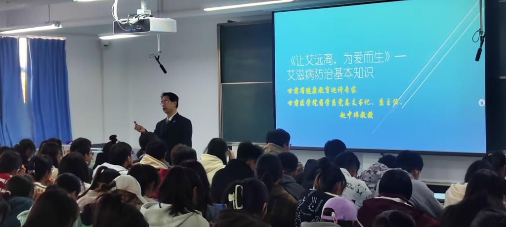 11月14日下午,药学系党总支书记、系主任赵中玮教授在一号教学楼第六大教开展“让艾远离,为爱而生--艾滋病防治基本知识”主题讲座。通过讲座,让青年学生系统的了解艾滋病防治相关知识,增强自我防护意识,树立健康理念,为青年学子的健康成长保驾护航。