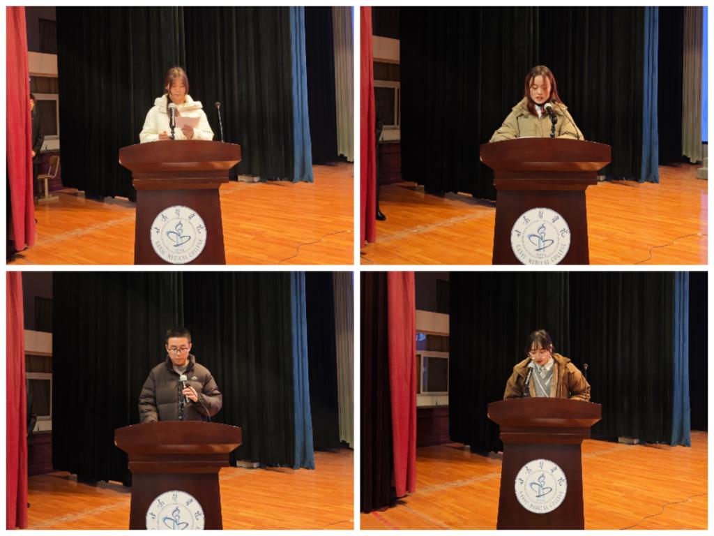 药学系学生会主席团代表王思懿向全体同学发出诚信考试倡议,倡议同学们科学复习、积极备考;厚德端行、诚信应考。