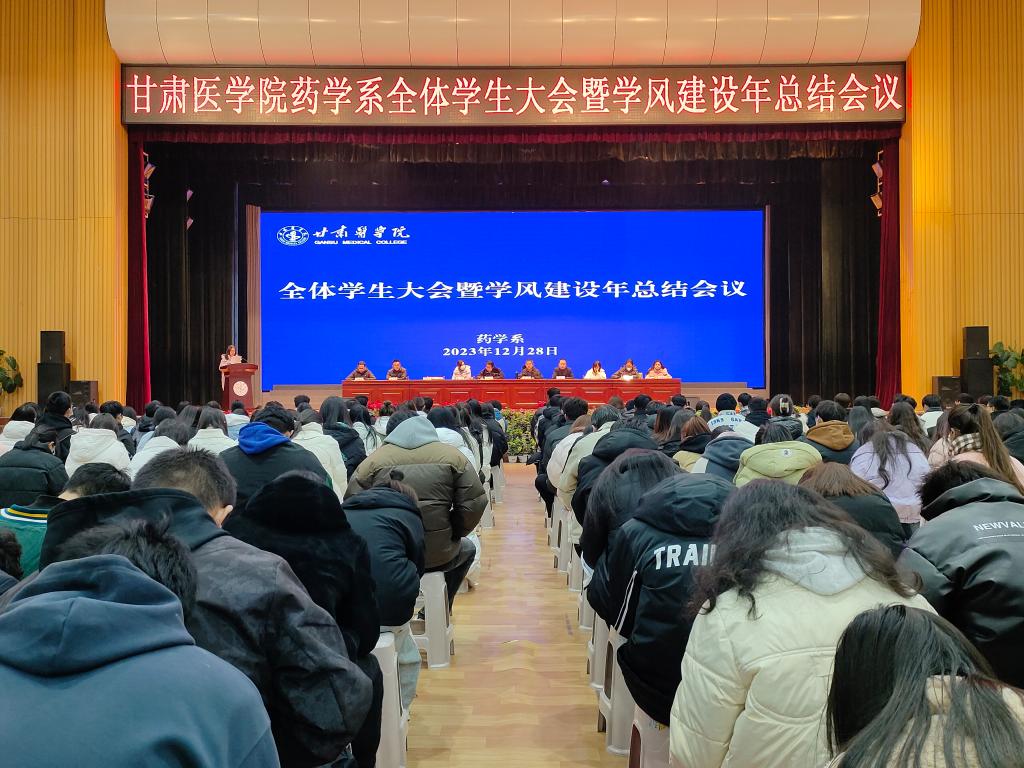 为深入贯彻党的教育方针,落实立德树人根本任务,进一步推进药学系学风建设,全力营造良好的育人环境,加强学生思想政治教育和保障学风建设长效机制的构建,培养德智体美劳全面发展的社会主义建设者和接班人,药学系于12月29日晚在学校体育馆召开了全体学生大会暨学风建设年总结会议。药学系党政领导、各科室负责同志、全体班主任、辅导员和全体在校学生参加了本次会议。大会由药学系副主任戴兴德教授主持。