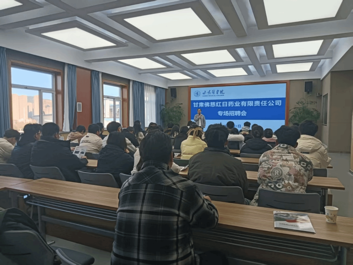 佛慈红日作为兰州佛慈制药与天津红日药业联合打造的现代化中药企业,坐拥甘肃最大的配方颗粒及精致饮片生产基地,配备液相色谱-质谱仪等先进检验设备,为实习生提供了高水准的实践场景。招聘现场,企业人力资源团队通过展板展示、案例分享等形式,详细介绍了中药饮片生产、质量检验、药品仓储配送等核心实习岗位的工作内容、培养体系及职业发展路径,助力实习生实现从课堂到职场的无缝衔接。