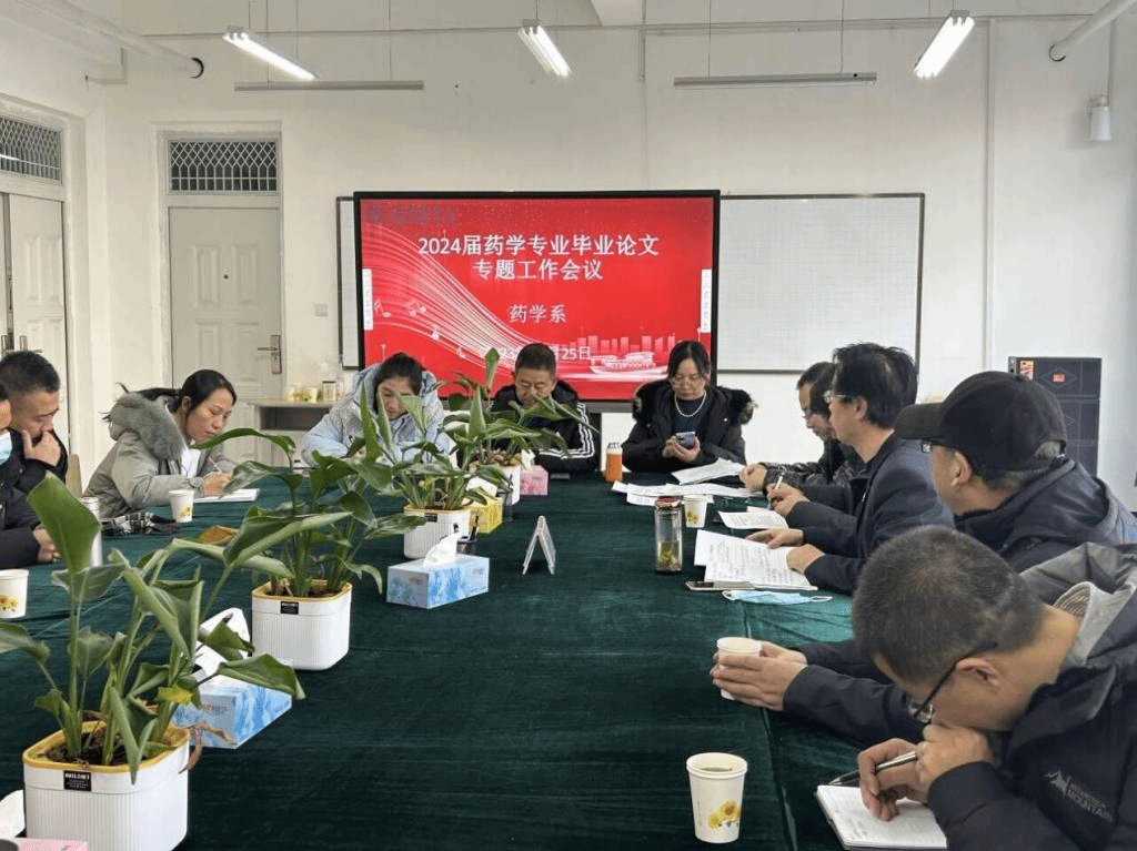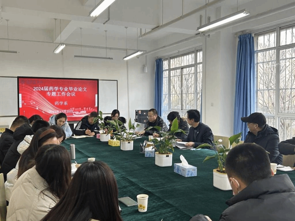 2023年12月25日下午16:30药学系在2号实验楼B107会议室召开2024届毕业论文工作专题会议,药学系全体专任教师、公共课教学部基础化学和有机化学教研室承担药学专业论文指导工作的老师和2024届毕业班班主任、辅导员参加。会议由药学系主任赵中玮同志主持。