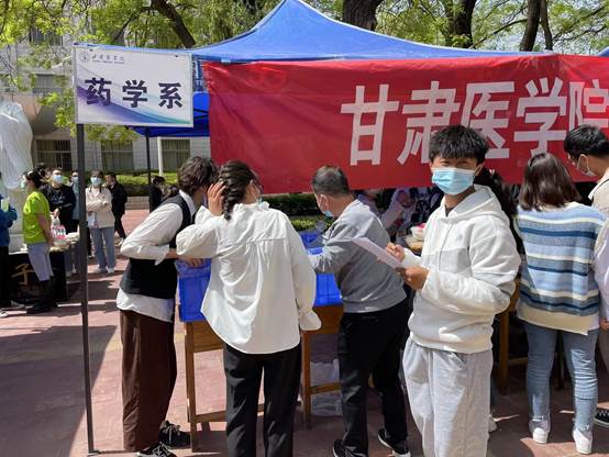 4月23日,2022年专升本考试在甘肃省平凉市第二中学举行,药学系按照学院党委的倡议,全程全方位服务考生,学生与综合科长戴兴德、班主任曹馨阳、胡国俊三人,首先在二中校门口为所有考生送上祝福和防疫物资如口罩等,嘱咐认真冷静答题,争取获得优异成绩。中午学生答完题后,又亲自将免费热腾腾的饭菜送到每一位考生手里,使广大考生吃在嘴里,甜在心头!,深深感受到母校对学子的关爱。下午所有考生考完后,又组织所有甘肃医学院药学系学生按规定相隔1米排队做了核酸检测。