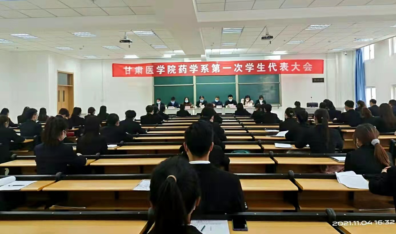 大会在雄壮的国歌声中拉开帷幕。药学系党总支书记、系主任赵中玮同志致开幕词,在讲话中指出,一年来,我系团学组织在系党总支和上级团组织的正确领导下,紧密围绕药学系中心工作,团结带领广大团员青年为药学系的建设和发展奉献青春、贡献力量。在加强团学组织自身建设、大学生思想政治教育、大学生素质拓展及校园文化建设等方面做了大量的、卓有成效的工作,取得了良好的成绩。希望药学系广大团员青年一要政治坚定,志存高远;二是要勤奋学习,提高本领;三要加强锻炼,全面发展;四要求真务实,不断创新。青春只有在为祖国和人民的真诚奉献中才能更加绚丽多彩,人生只有融入国家和民族的伟大事业中才能更有价值。学生党支部书记马尧领学了习近平总书记“七一”重要讲话精神,柳杰同学代表上届学生会做《甘肃医学院药学系学生会2020-2021年工作报告》。