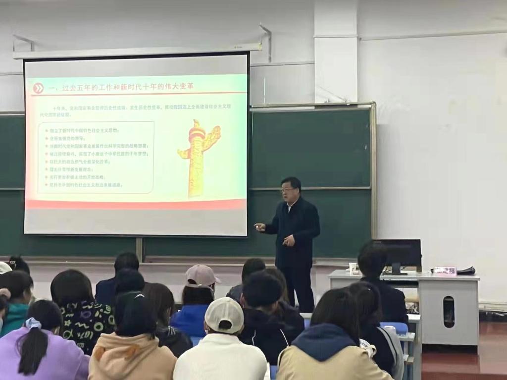 杨建福以“学思践悟党的二十大精神,努力构建大思政育人新格局”为主题,围绕“深刻认识党的二十大召开的重要意义,加深理解党的二十大主题,认真学习党的二十大报告的主要内容”等三个方面,对党的二十大报告进行了深刻分析和详细解读。他谈到,习近平总书记的党的二十大报告高瞻远瞩、博大精深,关于全面建设社会主义现代化国家的总体战略部署,是以中国式现代化全面推进中华民族伟大复兴根本遵循。面对百年未有之大变局,新时代新征程中国共产党的中心任务就是团结带领全国各族人民全面建成社会主义现代化强国,实现第二个百年奋斗目标,体现了以习近平同志为核心的党中央推进中华民族伟大复兴的雄心壮志!
