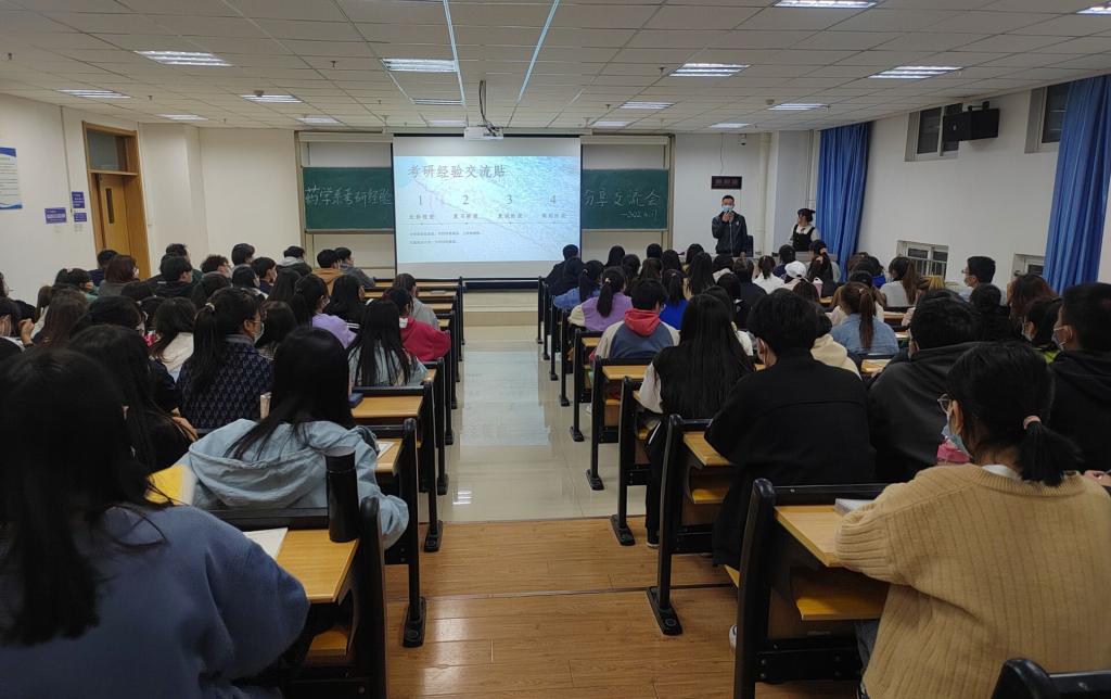 星光不负赶路人,天道酬勤佳音来。随着考研录取陆续结束,药学系喜报频传,一大批2022届毕业生被各大高校录取,将在逐梦的路上朝着更高的目标继续前行。为进一步营造药学系浓厚的学习氛围、提高考研热情、增强考研信心、掌握考研技巧,帮助同学们明确考研目标,做好考研路上的“传帮带”,药学系于2022年4月17日晚在2号教学楼A座3大教举办了“考研指导与经验分享交流会。