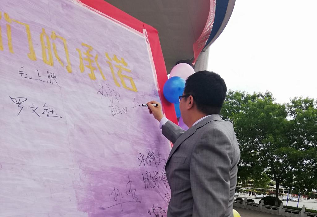 药学系全体学生参加了此次活动,在校领导的带领下,同学们踊跃地在“我们的承诺”展板上签下了自己的名字,做出了郑重的承诺。