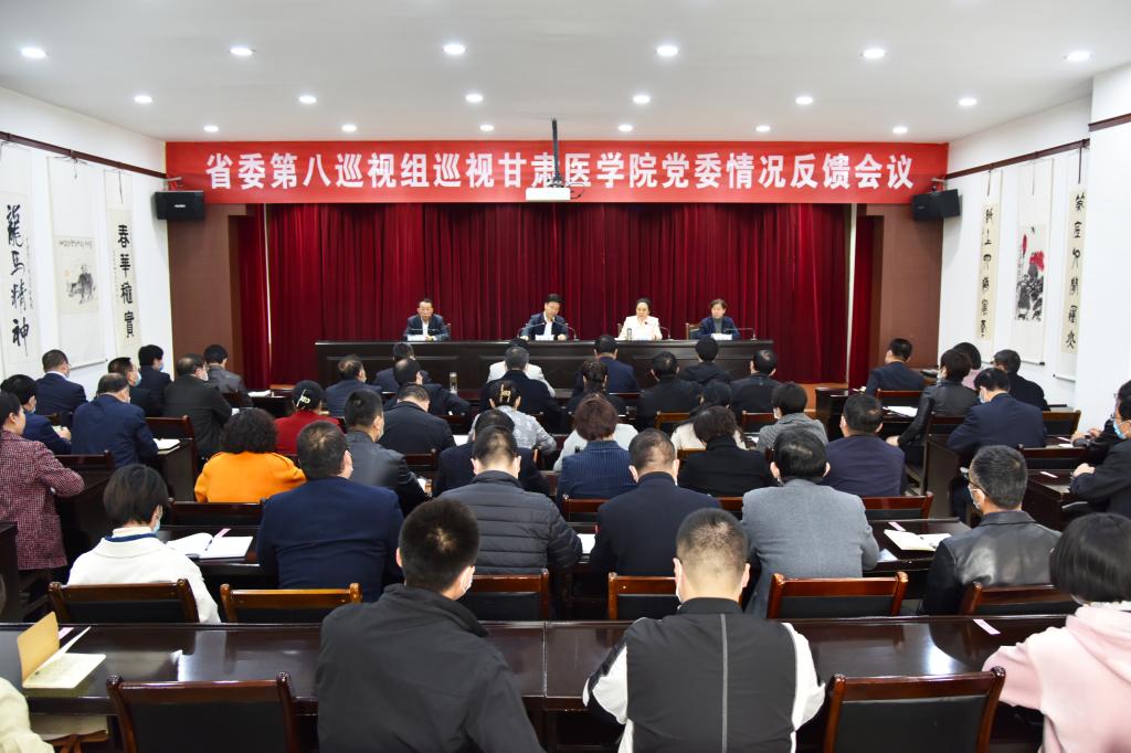 会议传达了省委巡视工作领导小组关于巡视整改的工作要求,甘肃医学院党委要坚持以习近平新时代中国特色社会主义思想为指导,从增强“四个意识”、坚定“四个自信”、做到“两个维护”的政治高度,提高政治站位,抓好巡视整改落实,进一步提高政治判断力、政治领悟力、政治执行力,准确把握在新发展阶段、新发展格局中所处的方位,完整、准确、全面贯彻新发展理念,认真履行好新时代肩负的职责使命。充分发挥全面从严治党引领保障作用,坚决落实“两个责任”,层层传导压力,把严的主基调长期坚持下去。坚定不移深化反腐败斗争,健全权力监督制约机制,突出加强对“关键少数”特别是“一把手”的监督,集中整治重点领域腐败问题,毫不松懈纠治“四风”,对形式主义、官僚主义问题全面检视、靶向纠治,锲而不舍抓好中央八项规定精神落实。坚持以人民为中心,持续整治侵害群众利益的腐败问题和不正之风,解决好群众的“急难愁盼”问题。深入贯彻新时代党的组织路线,加强领导班子、干部队伍和基层党组织建设,为新时代新阶段高等教育健康发展夯实组织保障。