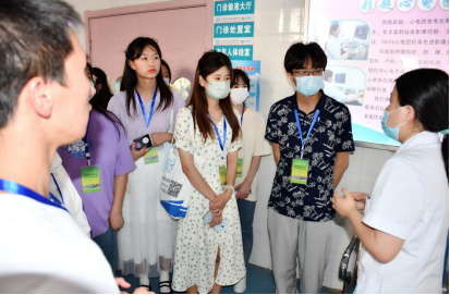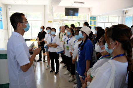 “你们平时主要工作是干什么?”“病人多吗?”“可以外出进修学习吗?”“我们主要承担基本医疗和基本公共卫生服务两大职能,开展基本医疗、预防保健、康复理疗、公共卫生、健康教育、计划生育指导等重点工作。”“年门诊接待一万多人次。”“外出进修学习机会很多,只要你愿意去。”现场的参观学习期间,同学们冒着30多度的高温,边参观边记录,争先恐后地问着各自关切的问题,负责介绍的医生耐心解答。