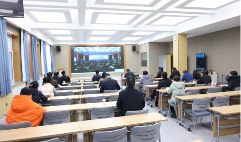 学院在路演大厅设立线上分会场,组织收听收看会议。