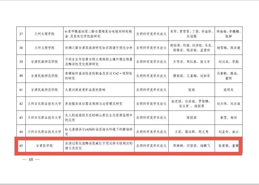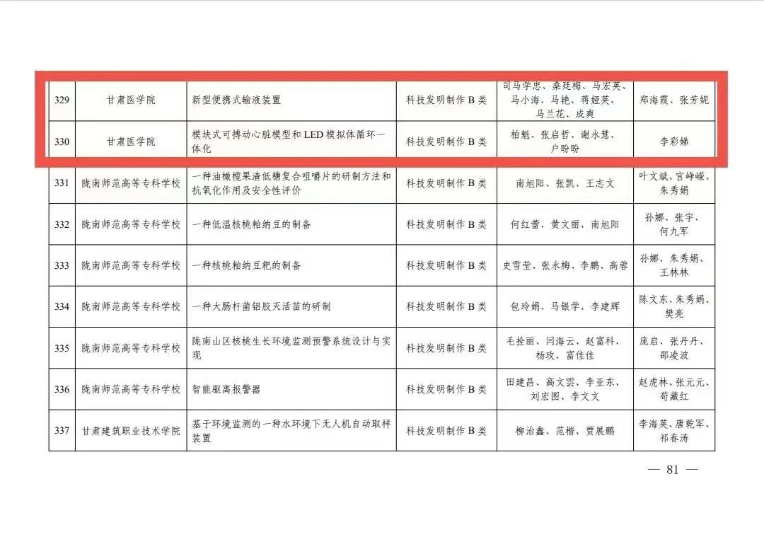 近日,团省委、省教育厅、省科协、省学联下发《关于公布第十四届“挑战杯”甘肃省大学生课外学术科技作品竞赛名单的通知》(甘团联发〔2023〕24号),我院共有18件作品在竞赛中获奖,其中主体赛事科技发明制作类10件作品、自然科学类3件作品、哲学社会科学类5件作品。主体赛事作品荣获省级一等奖1项,二等奖8项,三等奖9项。学校团体竞赛成绩荣获“优秀组织奖”,充分展现了甘医学子的专业素养和科研探索精神。