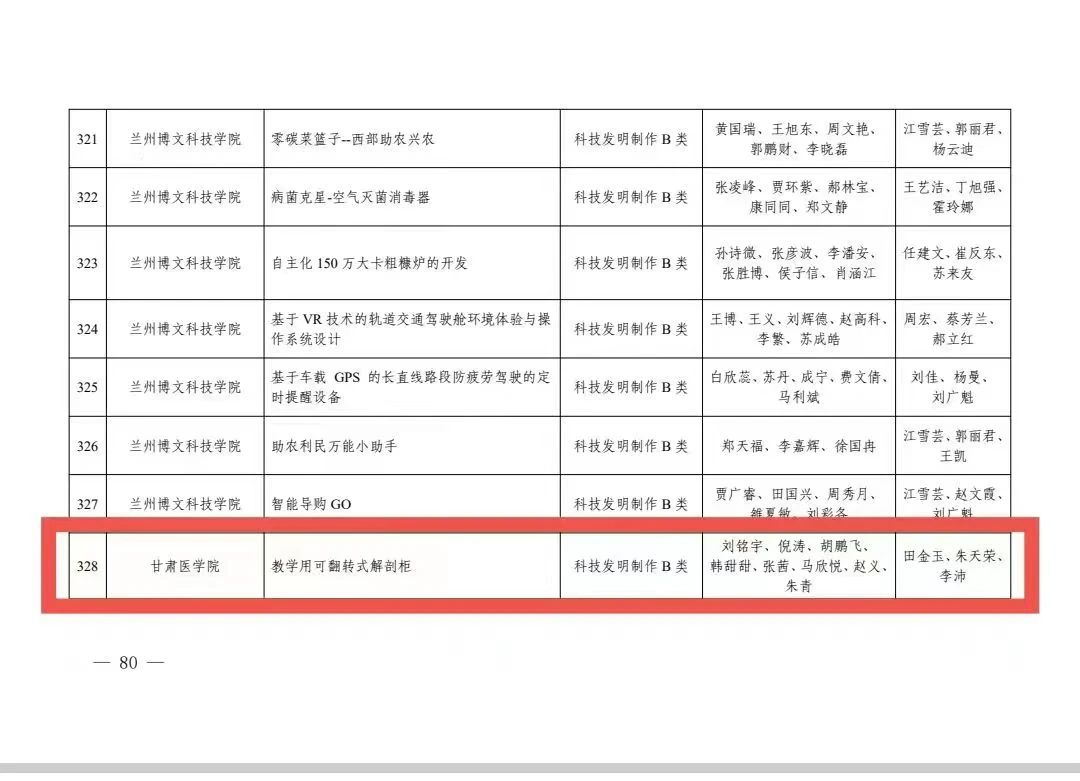 恭喜以上获奖的团队和个人,你们紧扣时代脉搏,共话新挑战、新机遇、新技术,你们将所学知识与社会科技紧密结合,充分展现了创新、创造、创业的意识和能力。“创新是一个民族进步的灵魂,是一个国家兴旺发达的不竭动力”,作为新一代甘医青年,更应该“借力乘风”,向榜样学习,与优秀者同伍,不怕困难,勇于开拓,提升创新能力,在“挑战杯”中“创青春”,肩负起历史赋予的科技创新重任,在奋斗中谱写新时代的青春之歌!
